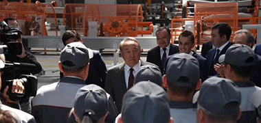 近日,位于哈薩克斯坦阿拉木圖新竣工的電纜廠(chǎng)投入生產(chǎn),該工廠(chǎng)所有線(xiàn)纜設(shè)備,全部由新線(xiàn)纜機(jī)械生產(chǎn)并提供指導(dǎo)技術(shù),該國(guó)總統(tǒng)努爾蘇丹·阿比舍維奇·納扎爾巴耶夫參觀(guān)訪(fǎng)問(wèn)了該工廠(chǎng),盛贊哈中經(jīng)貿(mào)合作,盛贊我公司設(shè)備質(zhì)量可靠